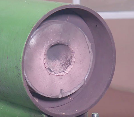 | Súng điện từ bắn đạn khoét 1 lỗ sâu trên miếng nhôm đặc. |