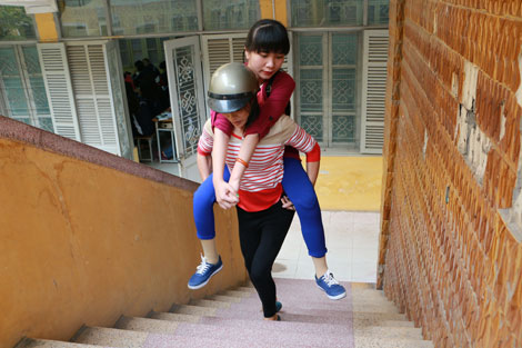 Chúng tôi đợi Luyện ở sân trường trong cái nắng hanh hao của một ngày thu tháng 10. Trước mắt tôi là cô gái có đôi mắt đen láy toát lên vẻ thông minh, chiếc mũi cao, mái tóc thướt tha ôm gọn khuôn mặt tròn. Nếu không nhìn thấy bước đi ngượng nghịu thì không ai tin nổi, một cô gái xinh xắn nhường này lại phải chịu sự bất hạnh đến tận cùng: mất cả 2 chân. Người mẹ gầy gò, khắc khổ, vẫn đội chiếc mũ bảo hiểm cõng con leo lên các bậc thang để vào lớp.