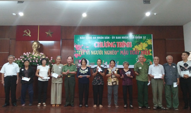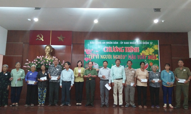 Phát biểu tại buổi trao tặng quà, Đại tá Trần Kim Thẩm, Phó Tổng Biên tập Báo CAND, cho biết: “Thực hiện chủ trương của Đảng và Nhà nước, chỉ đạo của Bộ Công an về việc chăm lo Tết cho đồng bào nghèo, gia đình chính sách, gia đình khó khăn, Báo CAND đã tổ chức chương trình Tết cho đồng bào nghèo. Trong chương trình này, Báo CAND được sự hỗ trợ rất tích cực của các doanh nghiệp trong cả nước. Báo CAND đã chuyển phần hỗ trợ của doanh nghiệp đến các địa phương. Từ đầu tháng 12-2017 đến nay, Báo CAND đã tổ chức hơn 20 đoàn công tác đến đến tặng quà cho đồng bào nghèo, gia đình chính sách ở nhiều tỉnh thành trong cả nước. Tại quận 12, Báo CAND phối hợp cùng UBND quận đến trao tặng 200 phần quà cho đồng bào nghèo, gia đình chính sách…”.
