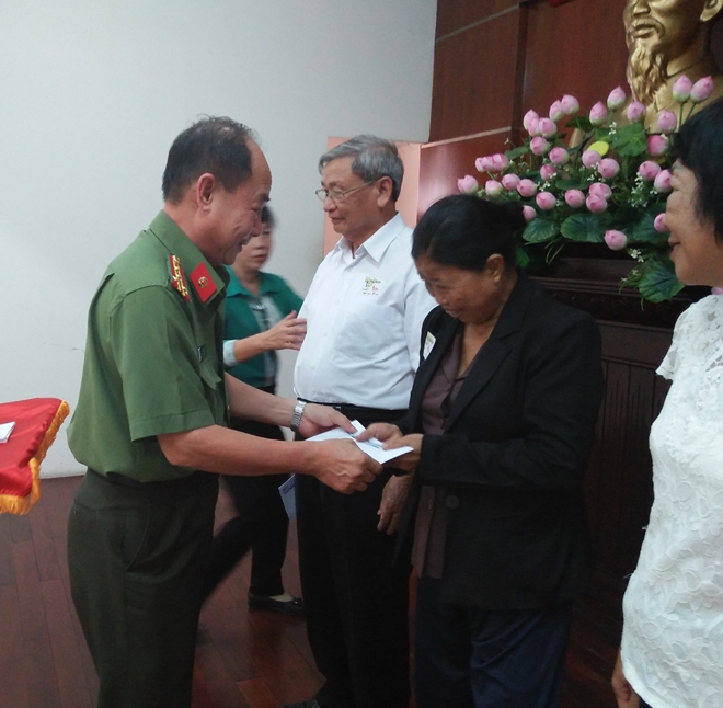 Đại tá Trần Kim Thẩm, Phó Tổng Biên tập Báo CAND và bà Trịnh Thị Mỹ Lan, Phó Chủ tịch UBND quận 12 đã trao những phần quà thiết thực cho các gia đình chính sách, hộ nghèo.