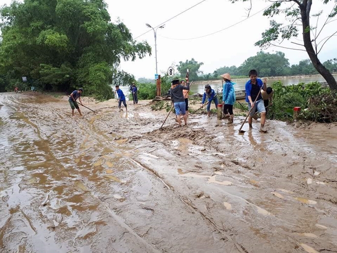 | Người dân địa phương khắc phục hậu quả sau bão |