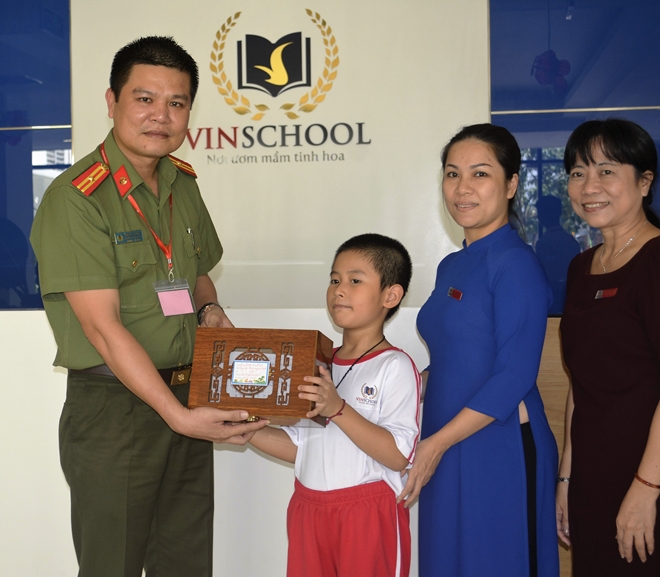 Thay mặt cho đoàn công tác của báo CAND đón nhận số tiền từ cậu bé, Thiếu tá Nguyễn Văn Bình, Phó Trưởng CQĐD- Báo CAND tại TP Hồ Chí Minh đã gửi lời cám ơn tới bé Tuệ Minh, tới thầy cô giáo Nhà trường cùng đại diện gia đình và lời chúc sức khoẻ cũng như gửi tới Tuệ Minh những lời động viên chân thành, mong muốn em tiếp tục là một học sinh ngoan, học giỏi và tiếp tục sống với những ước mơ đẹp như trong truyện cổ tích mà em đang có...