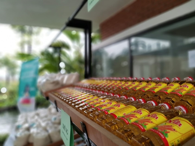 Nhiều mặt hàng như gạo, dầu ăn, trứng... được bày bán tại “siêu thị hạnh phúc” giá 0 đồng ở Huế.