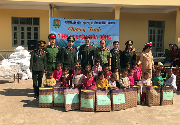 | Đoàn thanh niên và Hội phụ nữ Công an tỉnh Thái Bình thăm và tặng quà cho các em học sinh có hoàn cảnh khó khăn trường Mầm non Si Pa Phìn. |