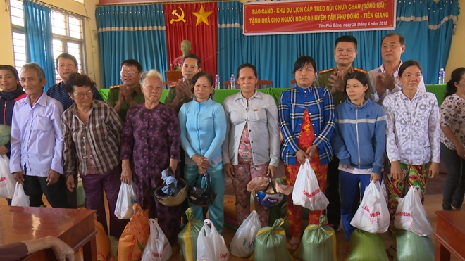 Ngày 28-4, đoàn công tác XHTT Báo CAND phối hợp với Khu du lịch cáp treo núi Chứa Chan (thuộc công ty TNHH TM-SX Toàn Xuân Hưng) và chùa Bửu Quang – Gia Lào, xã Xuân Trường, huyện Xuân Lộc, tỉnh Đồng Nai trao 400 phần quà, trị giá 100 triệu đồng cho người dân nghèo Tân Phú Đông (Tiền Giang) – huyện cù lao nằm giữa cuối dòng sông Tiền với một bên là cửa Tiểu, bên là cửa Đại, một mặt giáp biển. Đây là hoạt động thiết thực chào mừng kỷ niệm 43 năm Ngày miền Nam hoàn toàn giải phóng, đất nước thống nhất (30/4/1975-30/4/2018).