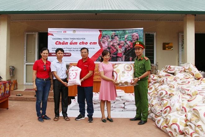 Tại đây Đoàn tình nguyện đã tặng 170 suất quà, mỗi phần quà bao gồm một chăn ấm, một thùng mỳ tôm và 10kg gạo cho các em học sinh thuộc 3 điểm trường (gồm trường mầm non, trường tiểu học và trung học nội trú) xã Na Cô Sa.