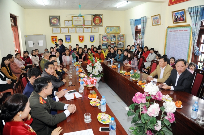 Chiều cùng ngày, Đoàn công tác có mặt tại trường mầm non nghèo xã Song Giang - ngôi trường được xây dựng trên mảnh đất địa linh nhân kiệt gắn bó với cuộc trường chinh chống giặc và xây dựng đất nước của dân tộc, đặc biệt là sự đóng góp lớn lao người và của trong 2 cuộc kháng chiến. Hiện nhà trường có 54 giáo viên với gần 450 em học sinh. Nhằm tạo một sân chơi bổ ích cho các em, Thiếu tướng Phạm Văn Miên, Tổng Biên tập Báo CAND và các nhà tài trợ đã trao “công trình vườn cổ tích” được xây dựng với tổng kinh phí 80 triệu đồng.