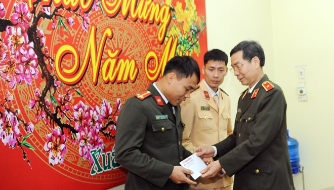 | Thiếu tướng Phạm Văn Miên, Tổng Biên tập Báo CAND thăm hỏi, động viên và trao tiền hỗ trợ sẻ chia với các cán bộ, chiến sỹ có hoàn cảnh khó khăn Công an huyện Gia Bình. |