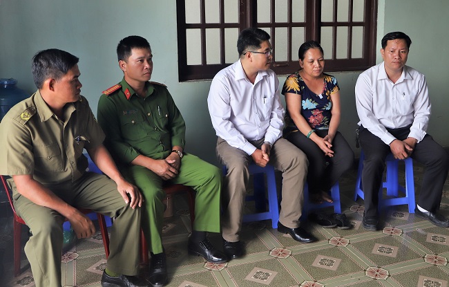 | Phóng viên Báo CAND cùng lãnh đạo UBND xã Lộc Châu, Công an xã Lộc Châu thăm hỏi, chia buồn cùng thân nhân gia đình đồng chí Phạm Minh Tú |