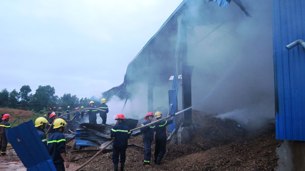 Tuy nhiên, do mùn cưa và dăm gỗ dễ bắt lửa, nên ngọn lửa đã nhanh chóng lan khắp khu vực nhà kho, đến hơn 6h sáng cùng ngày lực lượng mới khống chế được hoàn toàn ngọn lửa.