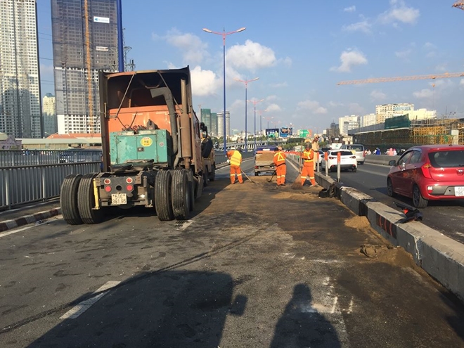 Rạng sáng 21-4, xe đầu kéo BKS 51C-381.95 lưu thông qua cầu Sài Gòn (hướng từ quận 2 về Bình Thạnh). Khi vừa đổ dốc cầu Sài Gòn (phía quận Bình Thạnh, TP Hồ Chí Minh) xe đầu kéo gặp sự cố nên lao sang trái tông hơn 50m mét dải phân cách khiến đầu xe đầu kéo hư hỏng nặng, dầu nhớt chảy tràn ra đường.