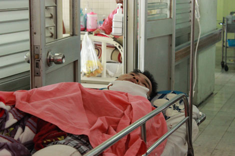 | Nạn nhân Nguyễn Tấn Khanh đang được điều trị tại BV Chợ Rẫy |