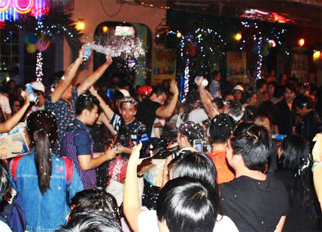 Một nhóm du khách lại chọn quán nhậu là nơi chào đón thời khắc giao thừa.