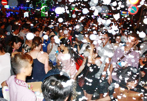 Càng về khuya không khí đón mừng năm mới càng được các du khách thể hiện trong đêm.