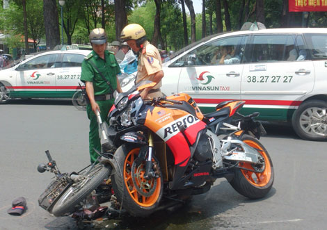 Va chạm xảy ra khiến chiếc CBR dính cứng vào chiếc xe gắn máy làm 2 xe hư hỏng và biến dạng. Hai nạn nhân nhanh chóng được chuyển vào bệnh viện cấp cứu, trong đó Dương bị thương khá nặng. Đến 12h, Phòng CSGT ĐB, ĐS-CATP đã hoàn tất công tác khám nghiệm và đưa 2 phương tiện về trụ sở làm rõ.