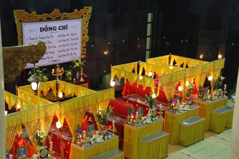 14h chiều ngày 17/12, nhà tang lễ Quân khu 5 (đóng tại quận Hải Châu, Đà Nẵng) chật kín người dân, đồng đội, người thân đến dự lễ truy điệu 5 chiến sĩ hy sinh trong vụ tai nạn. “Sỹ, Tú, Toán, Cường, Vinh ơi các anh ra đi khi tuổi đời còn quá trẻ”!... Giữa nghi ngút khói hương, những giọt nước mắt lăn dài quyện với những lời tiễn biệt nghẹn ngào.