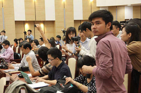 | Đông đảo phóng viên chờ đợi giải đáp từ phía lãnh đạo UBND TP Hà Nội |