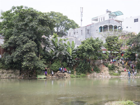 | Hiện trường đoạn sông Hiến phát hiện xác thiếu nữ. |