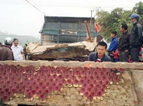 Theo những người chứng kiến vụ tai nạn cho biết, thời điểm trên, anh Vũ Đình Hiệp (22 tuổi, trú xã Quang Thành, Yên Thành, Nghệ An) điều khiển xe ben mang BKS: 37S-6755, khi đi qua cổng làng, do quên hạ thùng xe nên đã bất ngờ húc vào cổng.