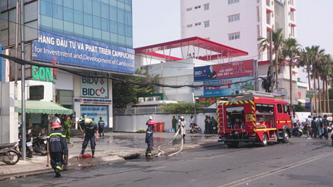 Các chiến sĩ nối vòi rồng theo nhiều hướng, dùng mặt nạ chống độc áp sát đám cháy. Sợ đám cháy lan rộng, nhiều nhân viên đã duy chuyển toàn bộ xe gắn máy từ tầng hầm ra ngoài đường. CSGT, công an phường đã tiến hành phong tỏa hiện trường phục vụ công tác chữa cháy.