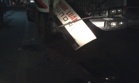 Khoảng 21h tối 22/4 trên QL IA thuộc thị trấn Cầu Giát huyện Quỳnh Lưu ( Nghệ An) đã xảy ra vụ tai nạn liên hoàn giữa 2 xe tải và xe máy khiến xe máy bị cuốn dưới gầm xe tải, lái xe bị thương nhẹ.