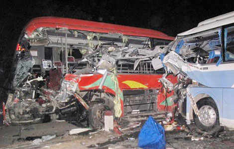 Tránh người đi bộ, 2 xe khách ‘đấu đầu’