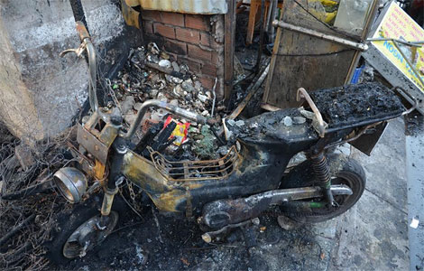 Chị Liên chỉ kịp lấy cặp giấy tờ, còn chiếc xe máy và laptop không kịp lấy đã bị cháy rụi.