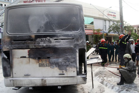 Hiện trường vụ cháy xe đưa rước học sinh.