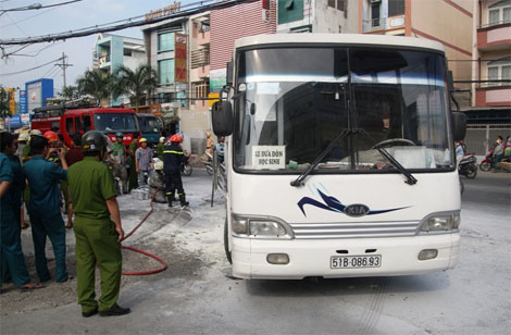 Khoảng 15h chiều nay, 19/1, xe ô tô 29 chỗ dùng để đưa rước học sinh BKS: 51B-086.93 lưu thông trên đường Huỳnh Tấn Phát (hướng từ quận 7 về Nhà Bè) để đón học sinh tan trường. Khi vừa qua gầm cầu Phú Mỹ khoảng 100m (thuộc phường Tân Phú, quận 7, TP HCM) bất ngờ đuôi xe chở học sinh bốc khói ngùn ngụt. Nhiều người dân phát hiện, hô hoán để tài xe dừng xe và một số người dân xung quanh đó đã dùng bình chữa cháy mini dập lửa.