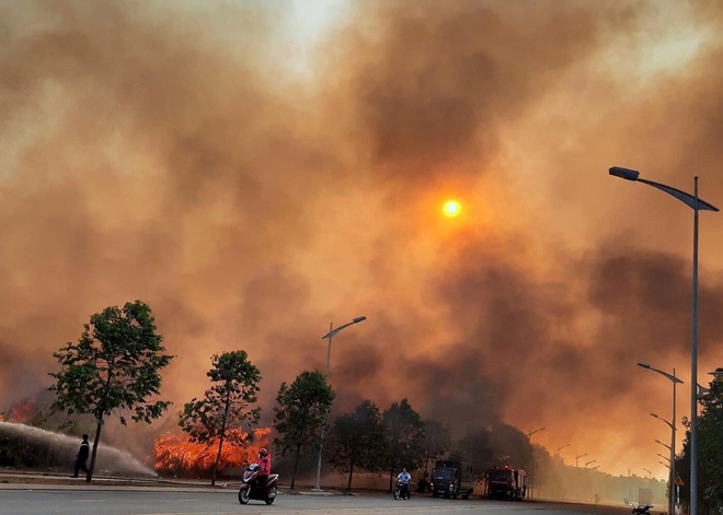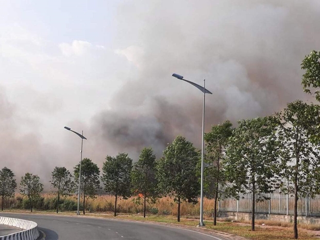 Ngọn lửa bùng phát từ lúc 14h30’ ngày 22/3 tại bãi đất rộng hàng chục hec ta trong Khu Công nghệ cao TP Thủ Đức (phường Tăng Nhơn Phú B, TP Thủ Đức, TP Hồ Chí Minh) nơi cỏ dại và lau sậy mọc um tùm. Thời điểm xảy ra cháy, trời nắng gắt công thêm gió mạnh khiến đám cháy lan rộng, đe dọa nhiều công ty trong Khu Công nghệ cao. Cách khu vực cháy nhiều km, tàn tro và khói đen khiến nhiều hộ dân bị ảnh hưởng. Người dân sống xung quanh khu vực này cùng đội chữa cháy tại chỗ dùng nước dập lửa nhưng đám cháy quá lớn và lan rộng nên không thể khống chế.