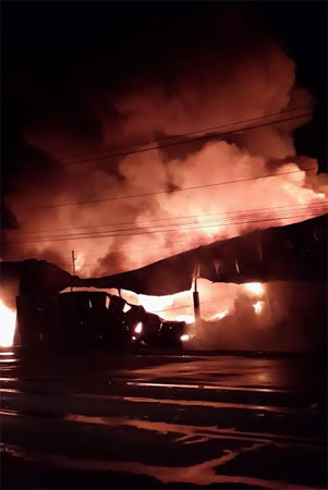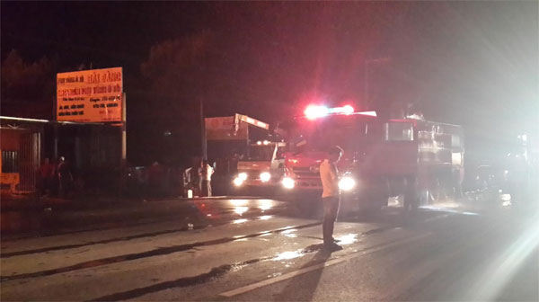 Cháy lớn tại kho vải gia công trên Quốc lộ 51