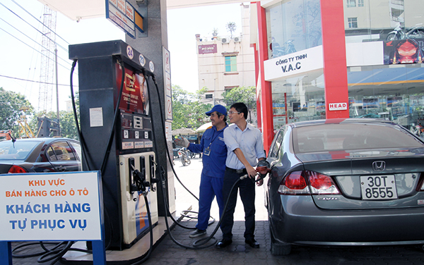 | Khách hàng tự bơm xăng tại một cửa hàng. |