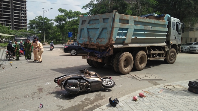 Chở con đến trường rồi quay lại chỗ làm thì bị xe ben tông tử vong