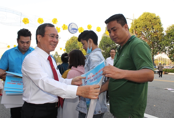 Bí thư Tỉnh ủy Bình Dương Trần Văn Nam đã cảm ơn CNLĐ ở các tỉnh, thành phố cả nước đã đến Bình Dương làm việc và góp phần đưa tỉnh phát triển. Đồng chí Bí thư Tỉnh ủy, nhấn mạnh: Đây là chương trình có ý nghĩa xã hội được liên tiếp tổ chức nhằm chia sẻ, hỗ trợ những đoàn viên công đoàn khó khăn, CNLĐ nghèo xa quê đang lao động tại Bình Dương có điều kiện về thăm và đón Tết, vui Xuân cùng gia đình. Bình Dương hết sức quan tâm và luôn luôn đồng hành, thấu hiểu và giúp đỡ, động viên và tạo điều kiện thuận lợi nhất để người lao động yên tâm làm việc…