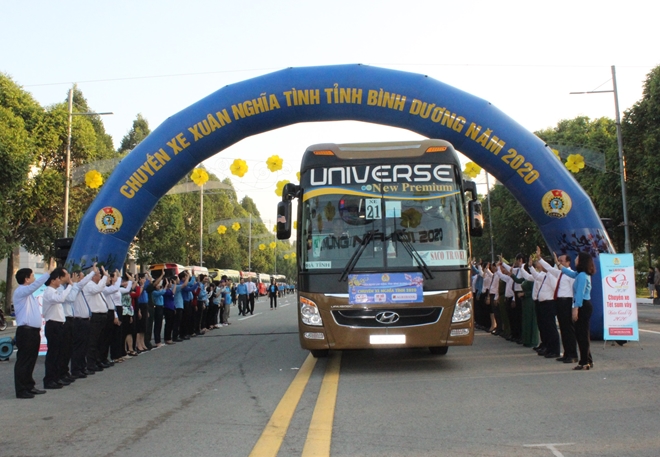 Ngày 20-1, Liên đoàn Lao động tỉnh Bình Dương đã tổ chức lễ xuất phát “Chuyến xe Xuân nghĩa tình năm 2020” đưa công nhân lao động (CNLĐ) có hoàn cảnh khó khăn về quê đón Tết tại TP Thủ Dầu Một, Bình Dương.