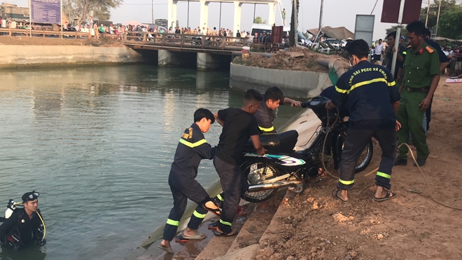 Đến 17h cùng ngày, Công an tìm được xe máy của anh D. cách bờ kênh khoảng 5m, cách nơi xảy ra tai nạn khoảng 10m và trục vớt đưa lên bờ rồi tiếp tục tìm kiếm nạn nhân. Đến 18h, nạn nhân bị nạn cũng được tìm thấy và đưa lên bờ.