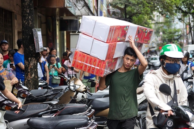Chen chân trên phố Thuỵ Khuê chờ mua bánh Trung thu