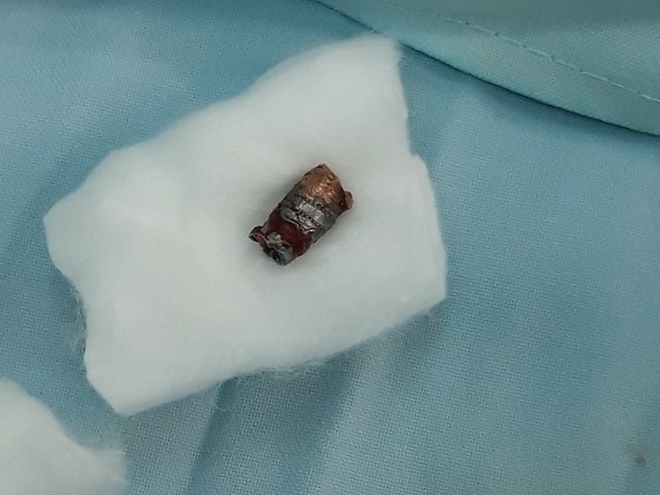 | Viên đạn được lấy ra từ cổ của Hậu |