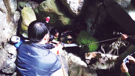 | Lực lượng cứu hộ đưa nạn nhân lên khỏi hang. |