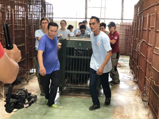 Theo ghi nhận, 6 cá thể gấu nuôi nhốt trong chuồng sắt chật hẹp của trang trại đã lần lượt được đưa sang chuồng sắt rộng hơn của Tổ chức cứu hộ động vật cứu hộ và bảo tồn động vật hoang dã Four Paws.