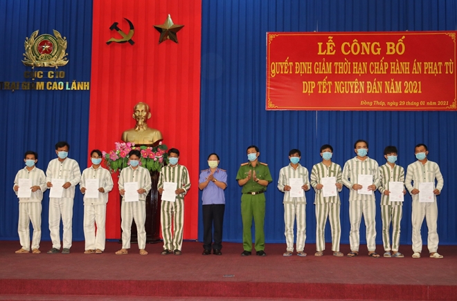 Ngày 29/1, Trại giam Cao Lãnh (Bộ Công an) công bố quyết giảm thời hạn chấp hành án phạt tù cho 466 phạm nhân đang chấp hành án.