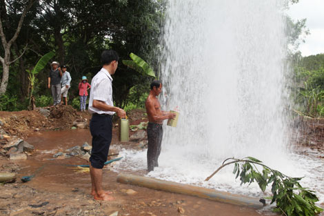 | Các cơ quan chức năng khuyến cáo người dân không vội vã sử dụng nguồn nước từ giếng phun. |