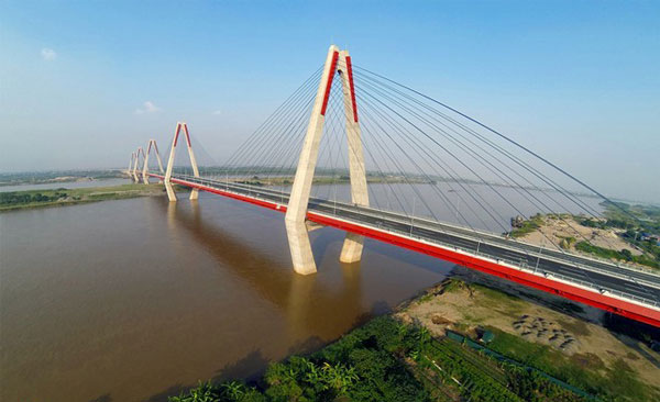 Cầu Nhật Tân bắt đầu tại phường Phú Thượng, quận Tây Hồ đến điểm cuối giao là xã Vĩnh Ngọc huyện Đông Anh. Đây là một trong những cây cầu hiện đại nằm trong tổng số 7 cầu bắc qua sông Hồng đoạn Hà Nội.