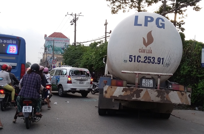 Khoảng 17h30’ ngày 21-8, xe bồn BKS 51C-253.91 lưu thông trên QL1A (hướng từ Thủ Đức đi quận 12).