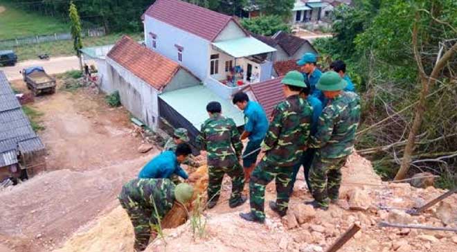 Một quả bom còn sót lại sau chiến tranh có trọng lượng 250kg, dài 2,2m nằm dưới lòng đất đã được Ban chỉ huy quân sự huyện Hoài Ân và Bộ chỉ huy quân sự tỉnh Bình Định tiến hành khai quật để tiêu hủy trong sáng ngày 5-4.