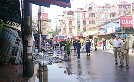 Trao đổi với PV Báo CAND ngay tại hiện trường vụ cháy, đại diện chỉ huy Phòng Cảnh sát PC&CC số 3 thuộc Cảnh sát PC&CC TP Hà Nội - đơn vị trực tiếp phụ trách công tác chữa cháy tại địa bàn này cho biết: Diện tích xảy cháy bao gồm 10 gian kiot ở mặt phía Tây của chợ Phùng Khoang, mỗi kiot có diện tích khoảng 6m2. Theo vị đại diện chỉ huy Phòng Cảnh sát PC&CC số 3, dù đám cháy đã được dập tắt hoàn toàn chỉ sau 30 phút nhưng hậu quả gây ra rất lớn, bởi các gian kiot này đều được xây dựng bằng khung sắt, mái tôn, có độ giữ nhiệt cao. Đặc biệt, các gian kiot đều có cửa sắt kiên cố ở bên ngoài, gây khó khăn cho lực lượng chức năng và người dân trong việc phá cửa, tiếp cận dập lửa, cứu người.