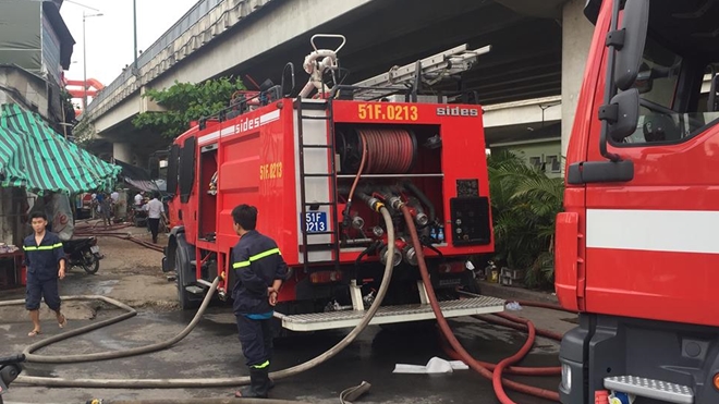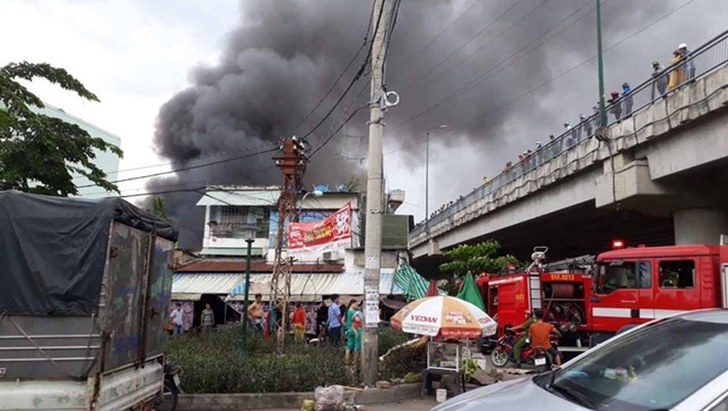 Khoảng 13h30’ ngày 7-9, đám cháy bùng phát tại dãy nhà trọ trên đường Phạm Văn Đồng, phường 13, quận Bình Thạnh, TP Hồ CHí Minh, đoạn dưới chân cầu Bình Lợi.