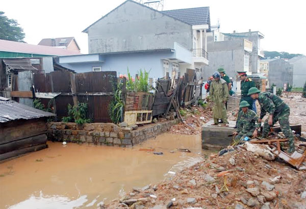 | Bộ Chỉ huy quân sự tỉnh Lâm Đồng cũng đã điều lực lượng tới hiện trường giúp người dân khắc phục hậu quả. |