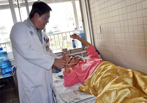 Chiều 10/2, TS-BS Phạm Kim Chung, Phó khoa Ngoại thần kinh BV Chợ Rẫy cho biết, bệnh nhân Phương được BVĐK An Phước (Bình Thuận) chuyển tới BV Chợ Rẫy vào 14h chiều 9/2 với nhiều tổn thương trên cơ thể: Gãy xương đòn phải, tổn thương vùng xương cụt phải, tức ngực, đau vùng bụng, hạ sườn phải có vết bầm tím khá nặng…