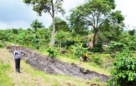 | Mặt đất tại Di Linh bị nứt toác vào năm 2014. |